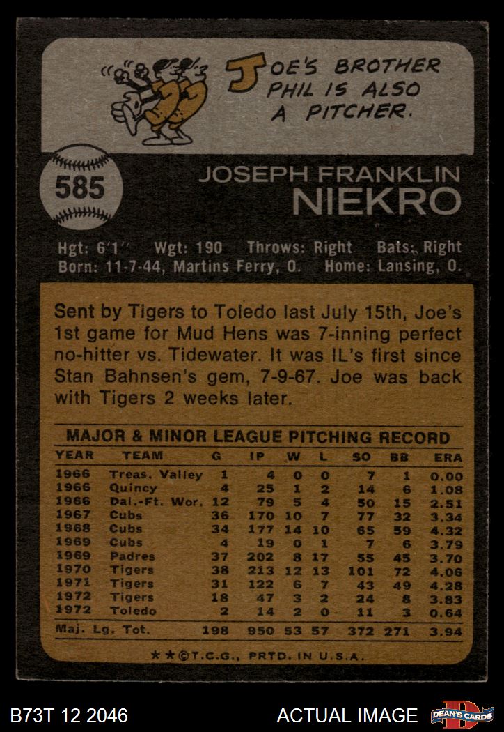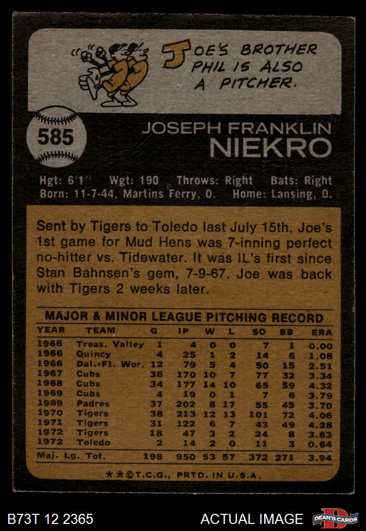 1973 Topps #585 Joe Niekro 2 - GOOD