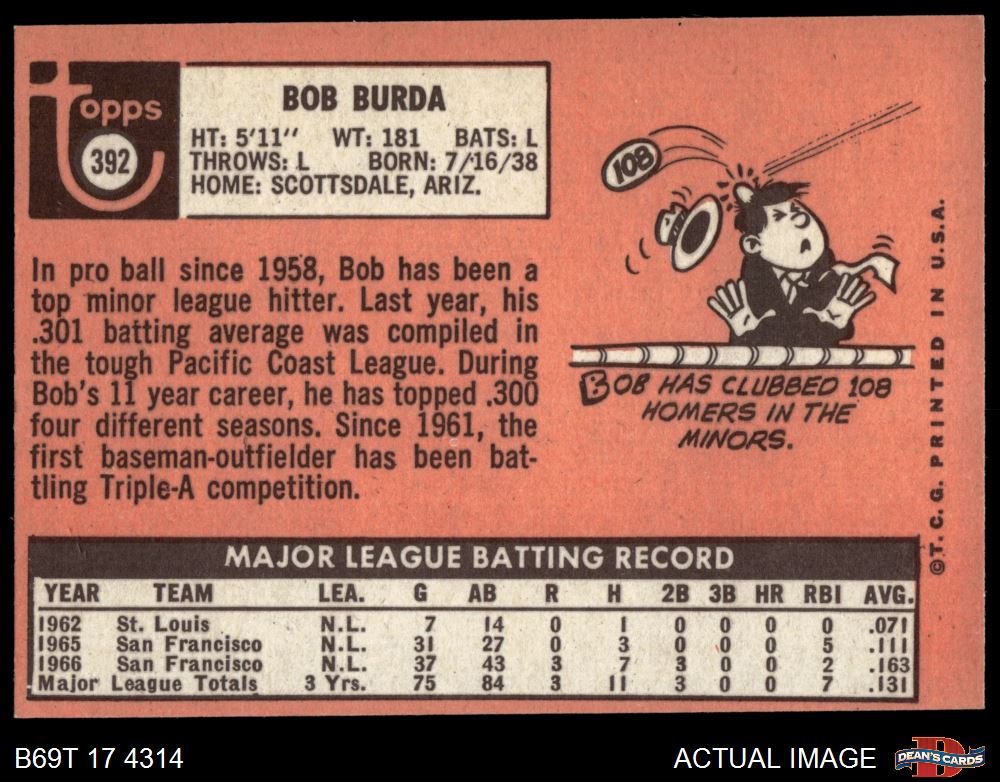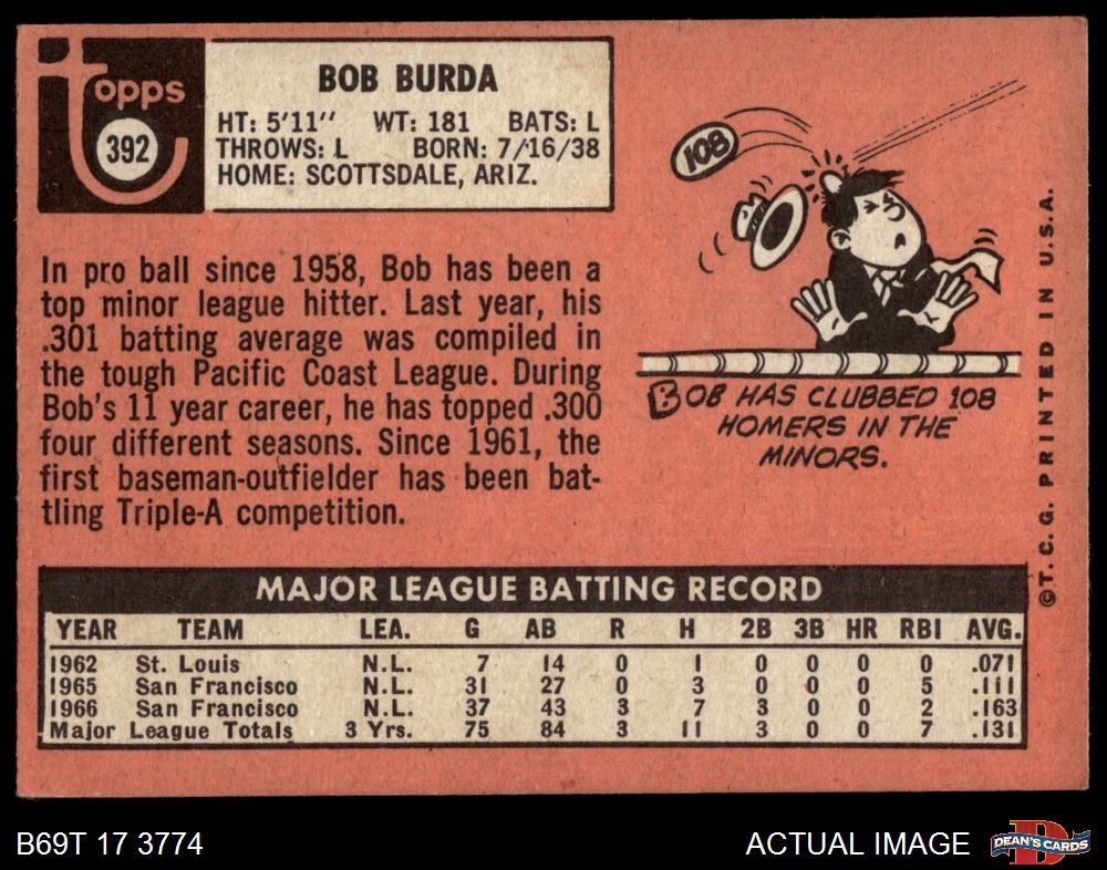 1969 Topps #392 COR Bob Burda