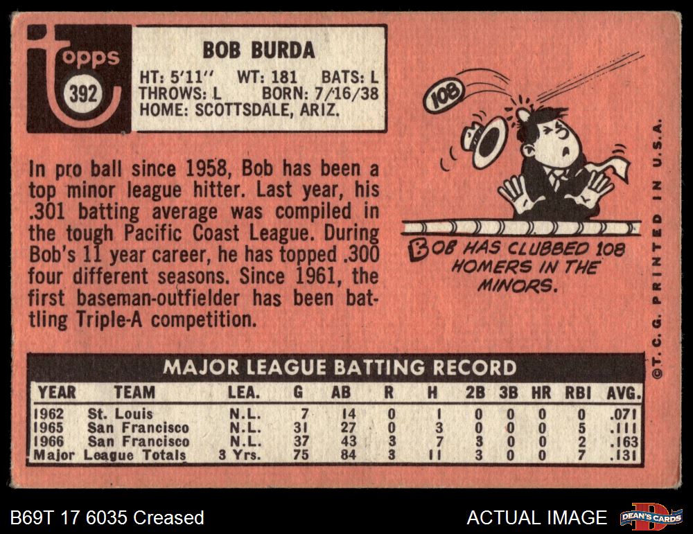 1969 Topps #392 COR Bob Burda 2 - GOOD
