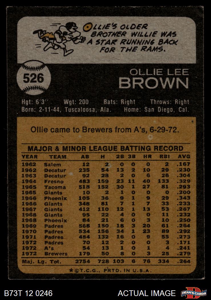 1973 Topps #526 Ollie Brown 4 - VG/EX