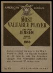 1961 Topps #476 - Jackie Jensen Most Valuable Player 2 - GOOD