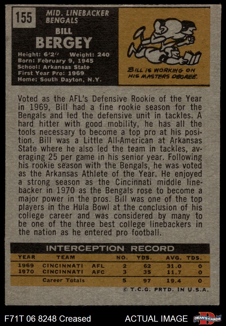 1971 Topps #155 Bill Bergey Front Thumbnail