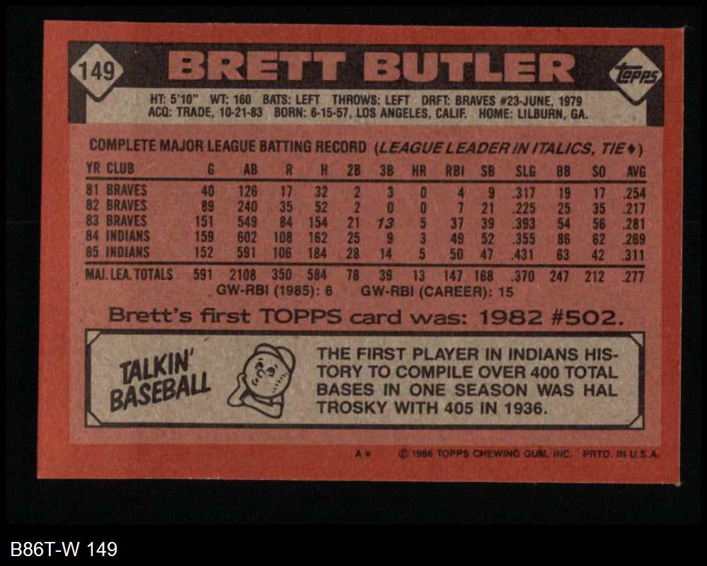 1986 Topps #149 Brett Butler 8 - NM/MT