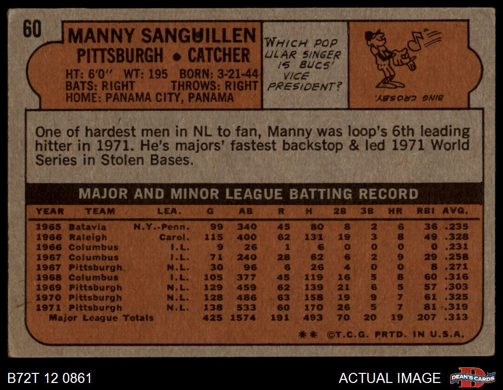 1972 Topps #60 Manny Sanguillen 2.5 - GD+