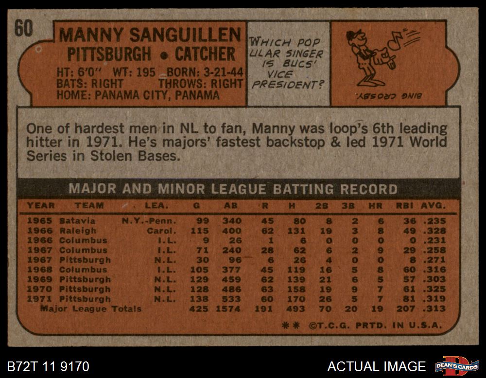 1972 Topps #60 Manny Sanguillen 6 - EX/MT