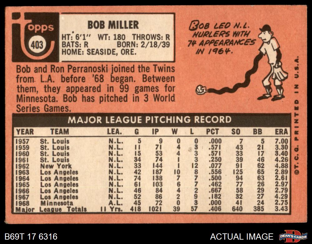 1969 Topps #403 Bob Miller