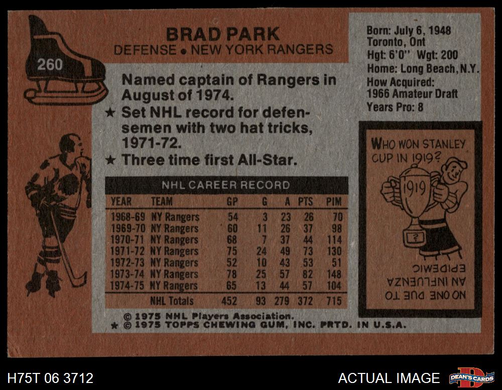 1975 Topps #260 Brad Park 4 - VG/EX