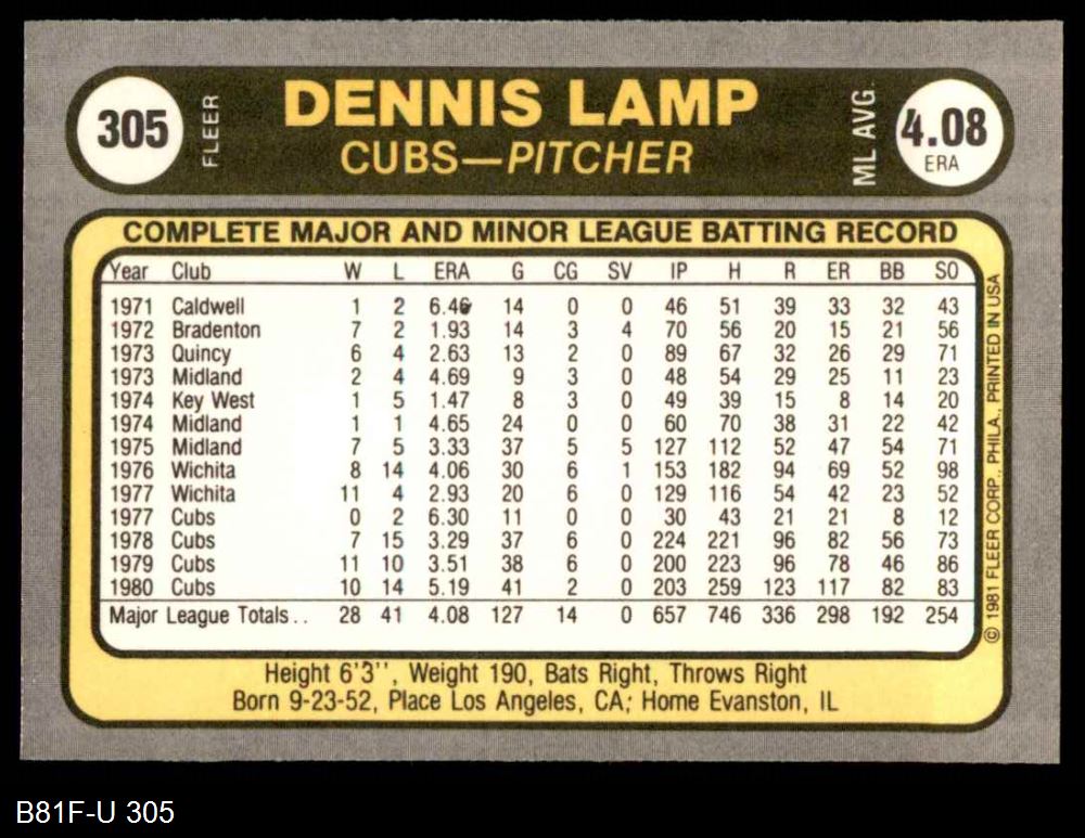 1981 Fleer #305 Dennis Lamp