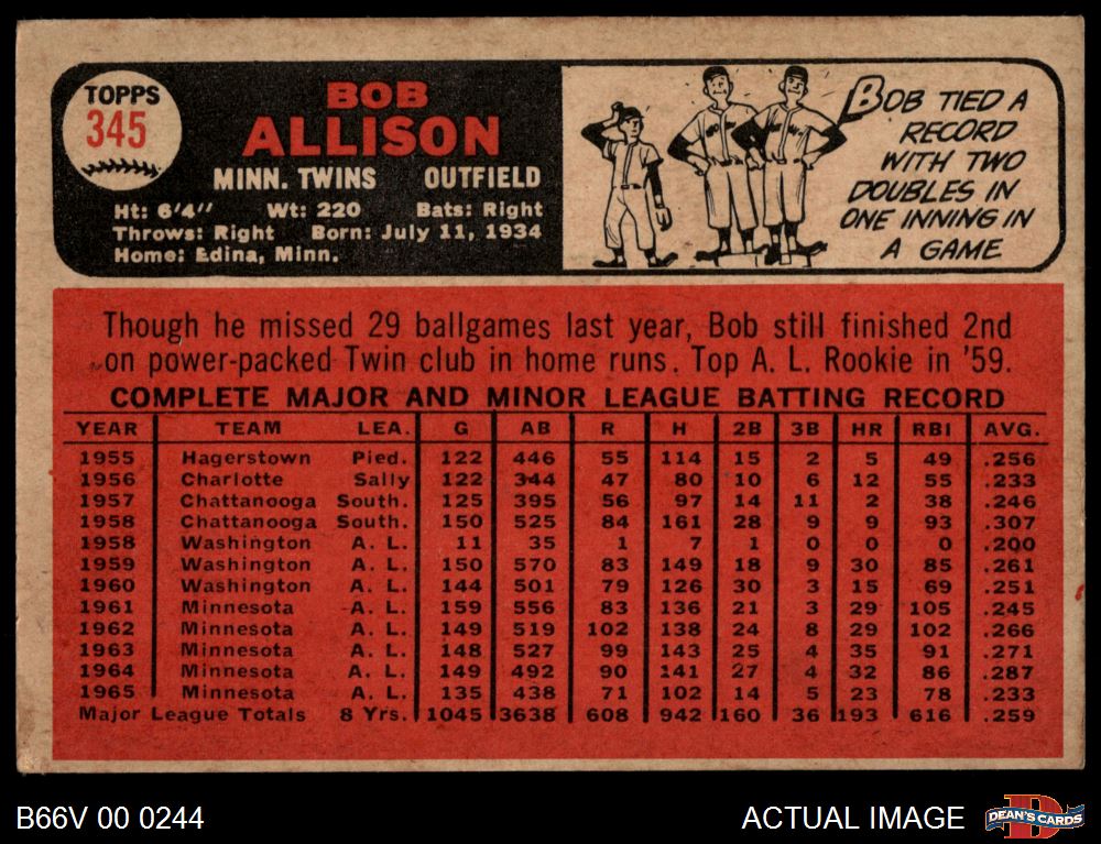 1966 Topps Venezuelan #345 Bob Allison 3 - VG