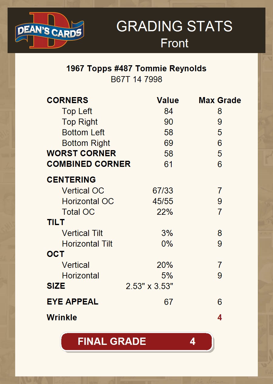 1967 Topps #487 Tommie Reynolds 4 - VG/EX