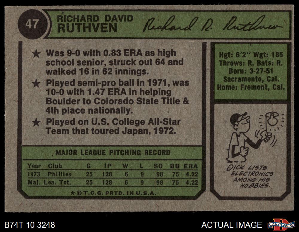 1974 Topps #47 Dick Ruthven 5 - EX