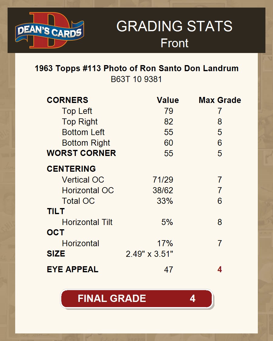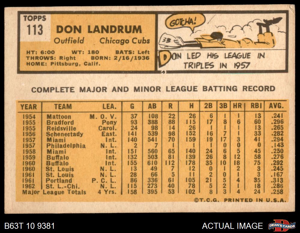 1963 Topps #113 Photo of Ron Santo Don Landrum 4 - VG/EX