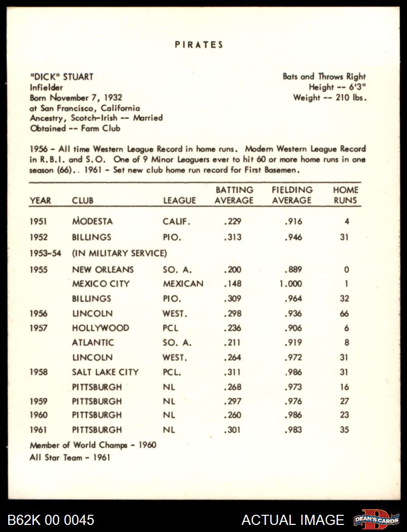 1962 Kahn's Dick Stuart 7 - NM