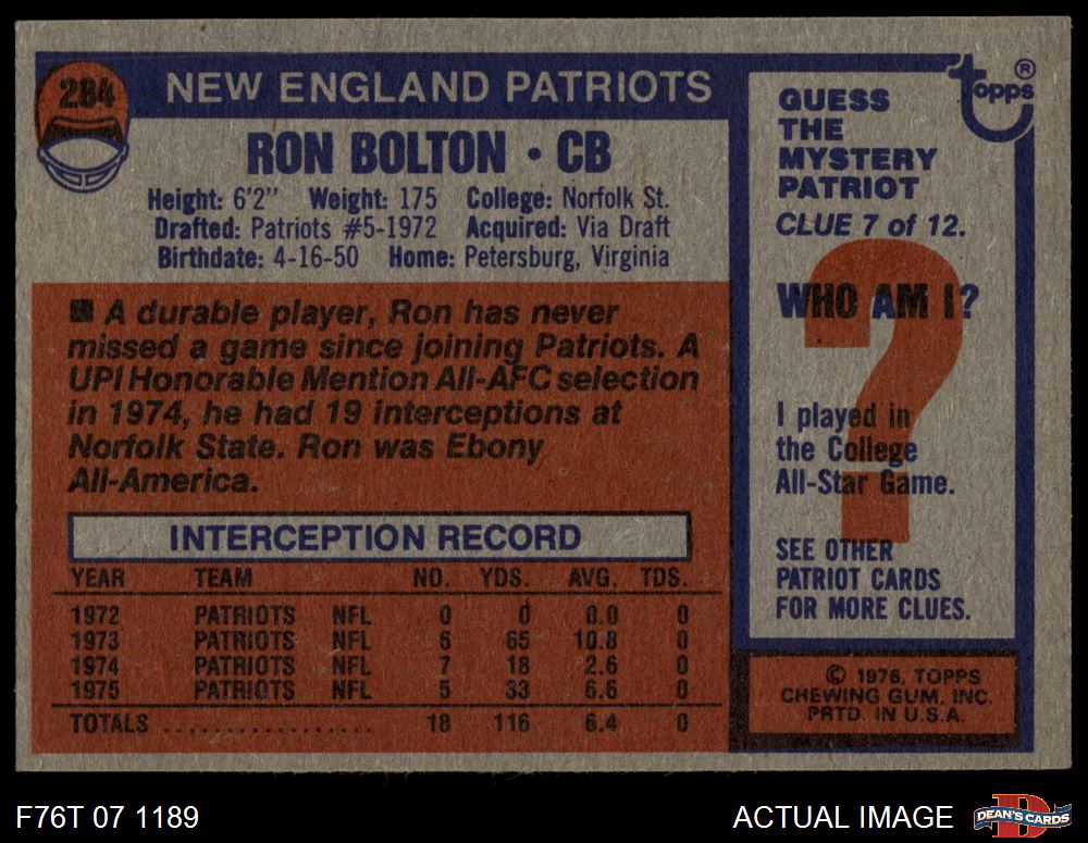 1976 Topps #284 Ron Bolton 7 - NM