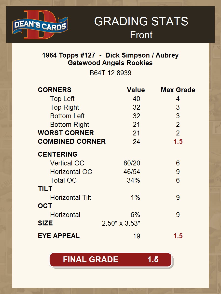 1964 Topps #127 - Dick Simpson / Aubrey Gatewood Angels Rookies 1.5 - FAIR