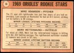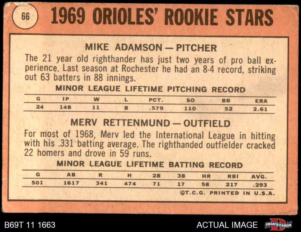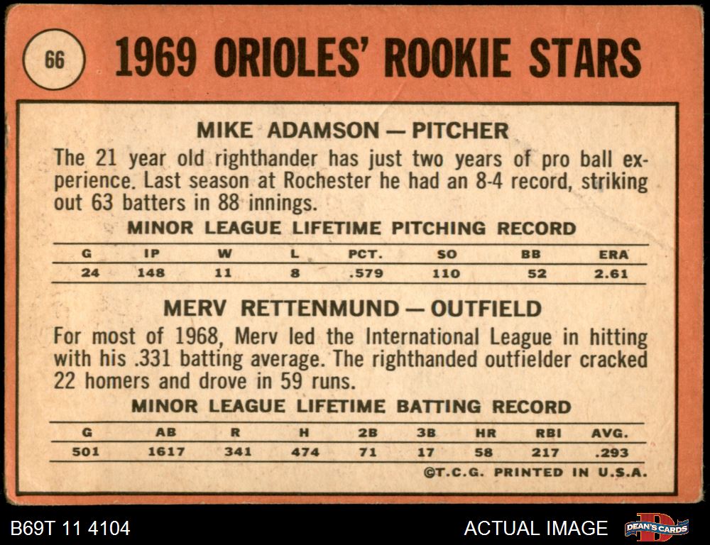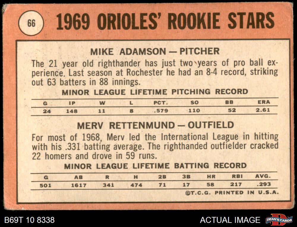1969 Topps #66 - Merv Rettenmund / Mike Adamson Orioles Rookies 1 - POOR