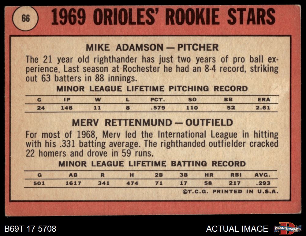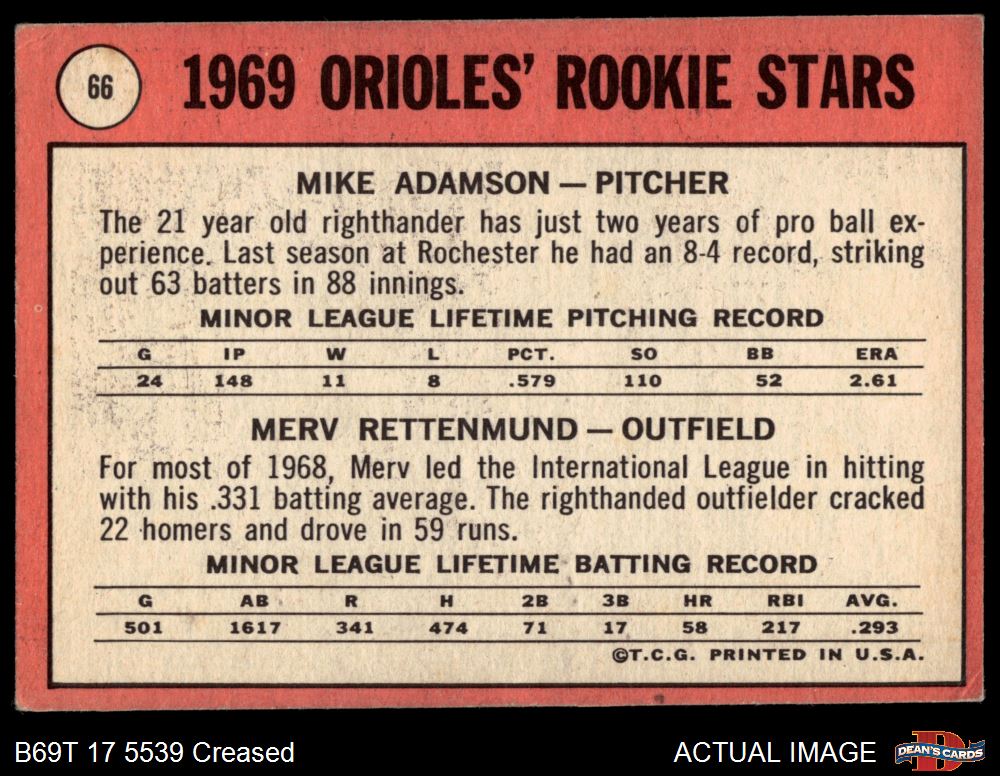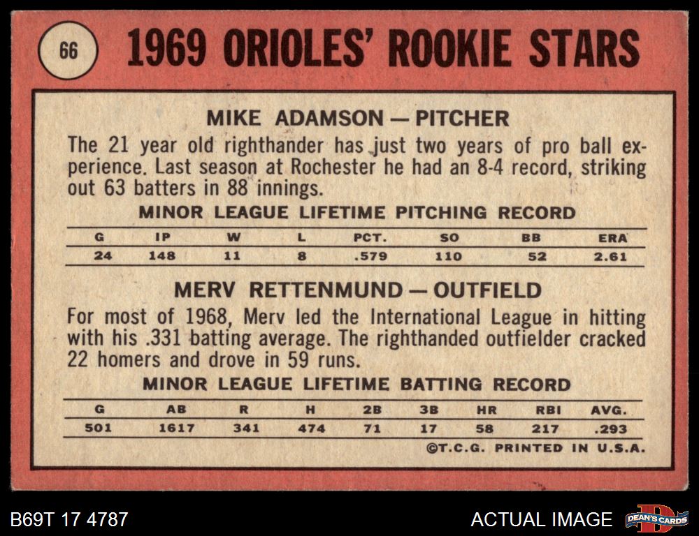 1969 Topps #66 - Merv Rettenmund / Mike Adamson Orioles Rookies 3 - VG