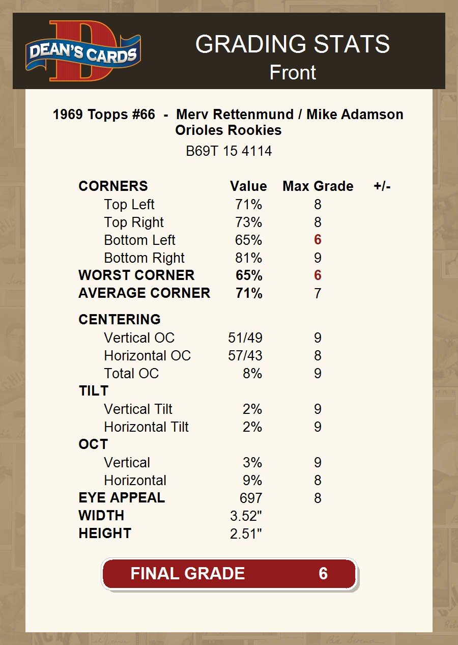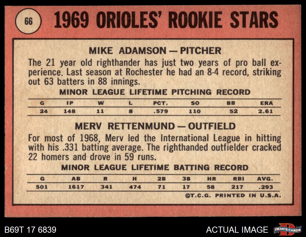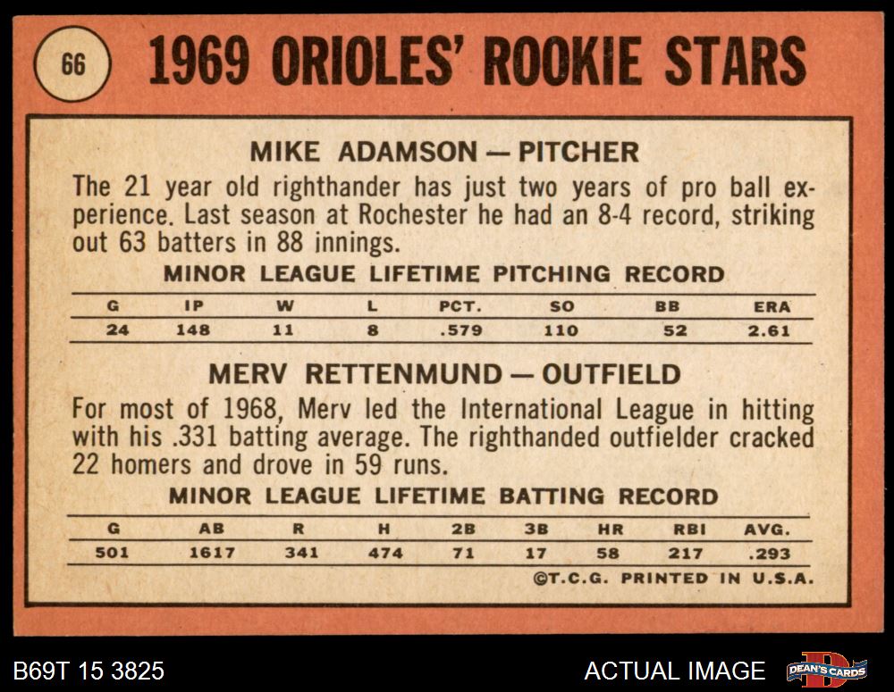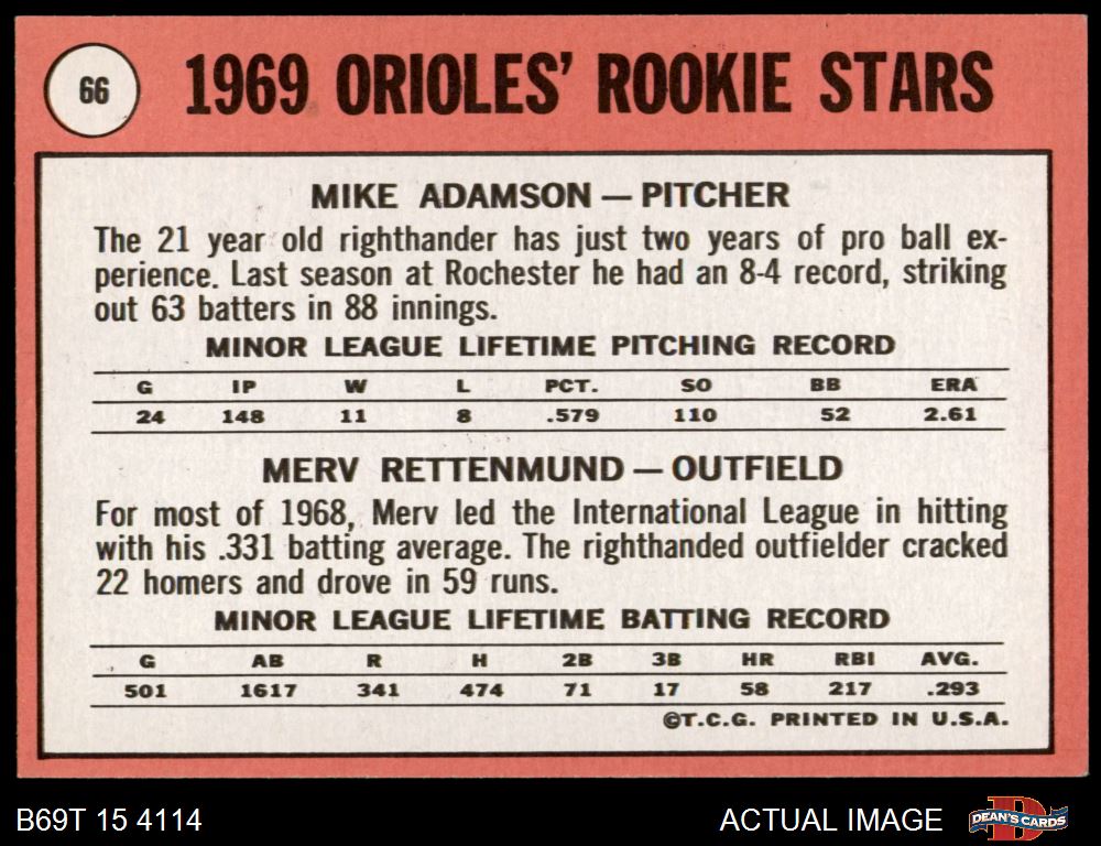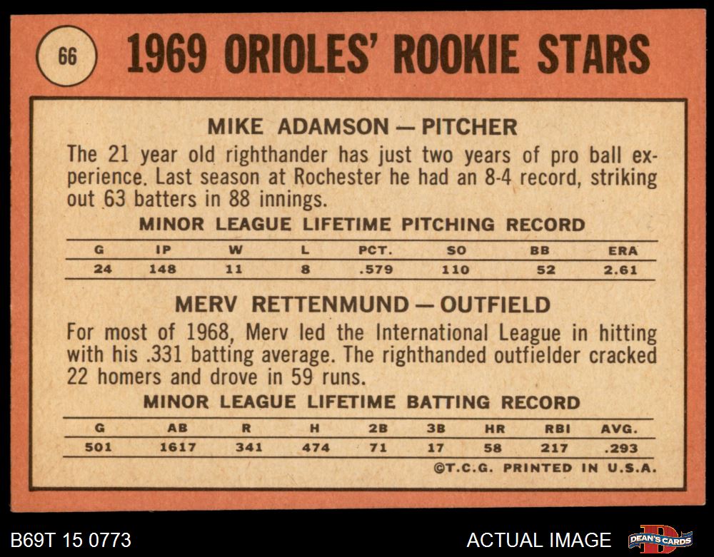 1969 Topps #66 - Merv Rettenmund / Mike Adamson Orioles Rookies 6 - EX/MT