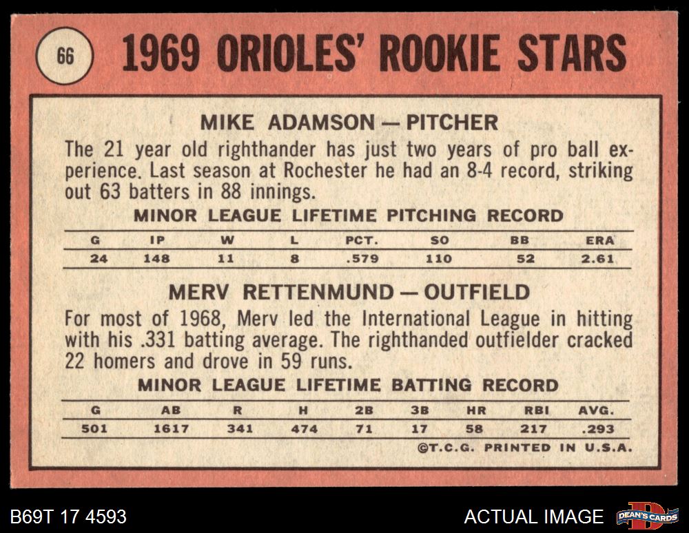 1969 Topps #66 - Merv Rettenmund / Mike Adamson Orioles Rookies 6.5 - EX/MT+