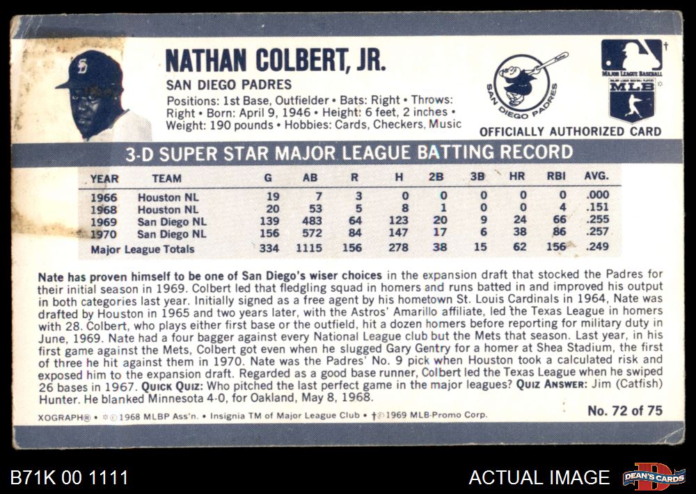 1971 Kellogg's #72 Nate Colbert 1.5 - FAIR