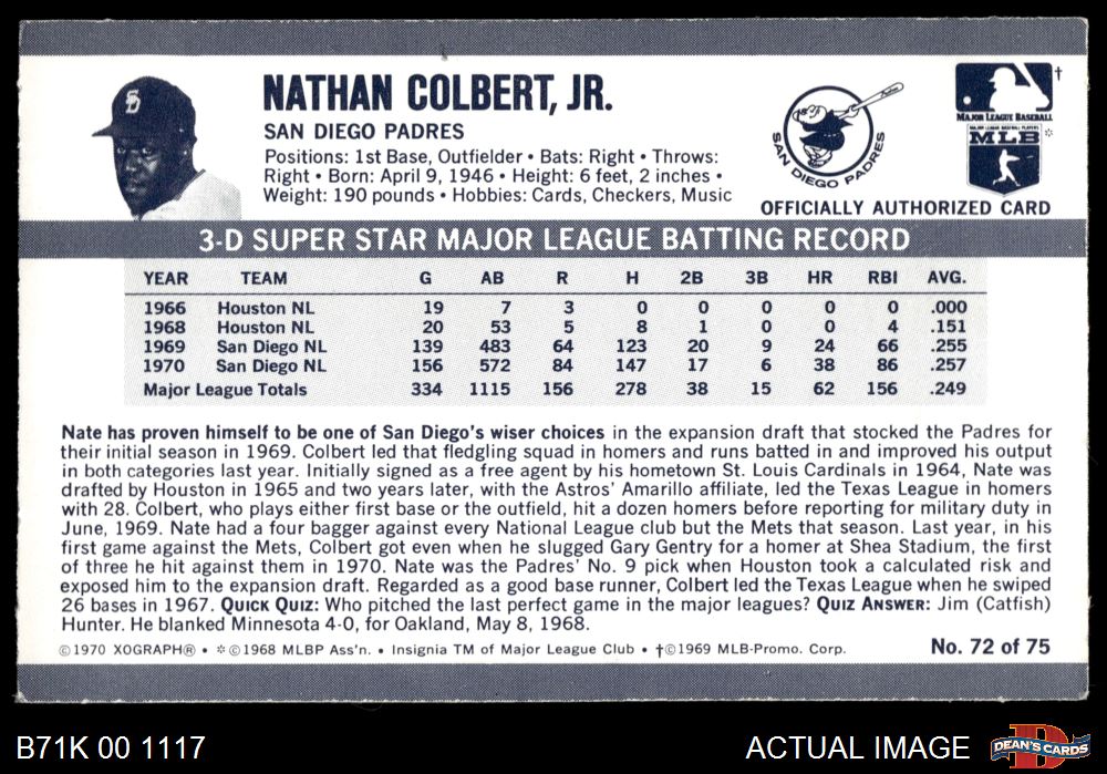 1971 Kellogg's #72 Nate Colbert 7 - NM