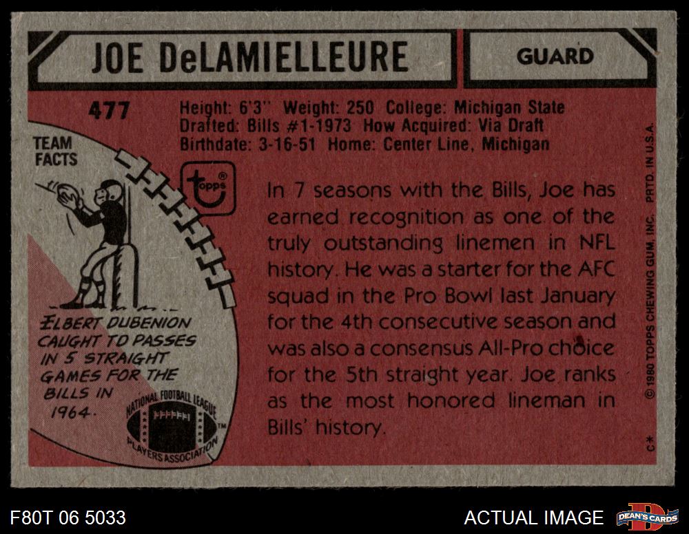 1980 Topps #477 Joe DeLamielleure 5 - EX