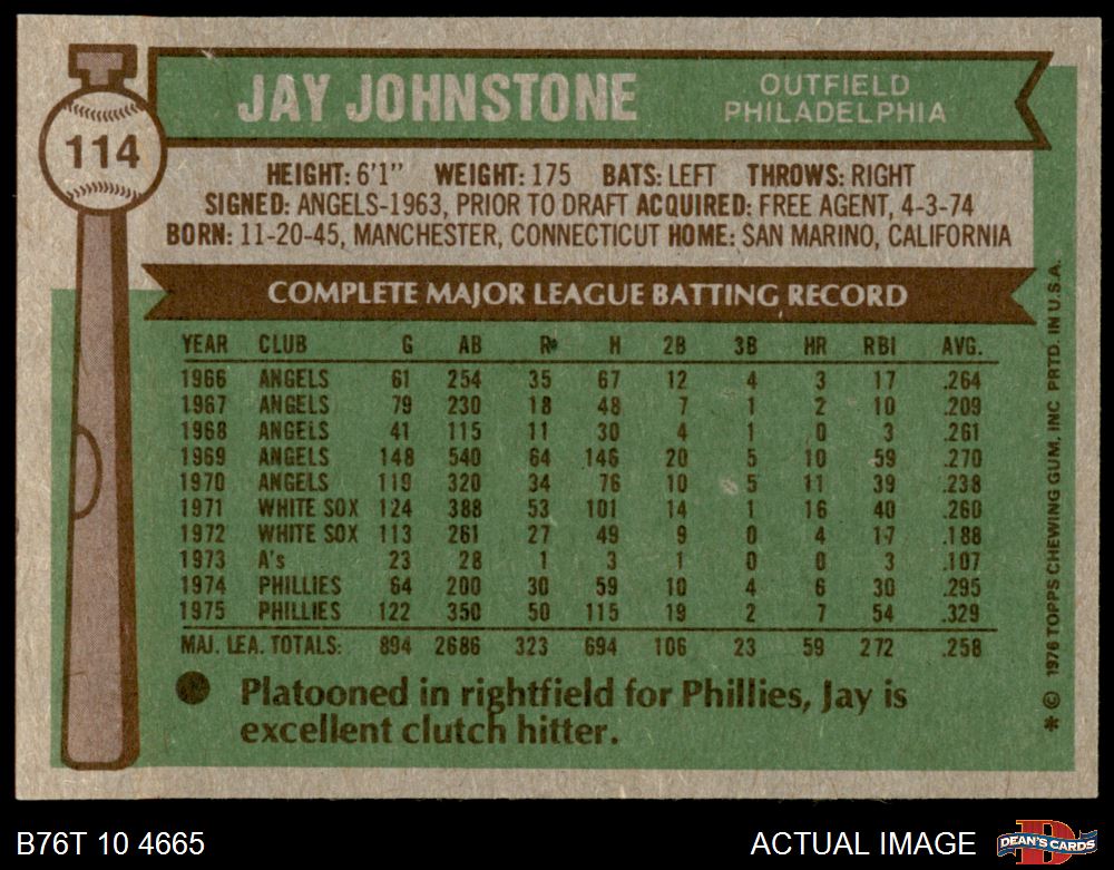 1976 Topps #114 Jay Johnstone 6 - EX/MT