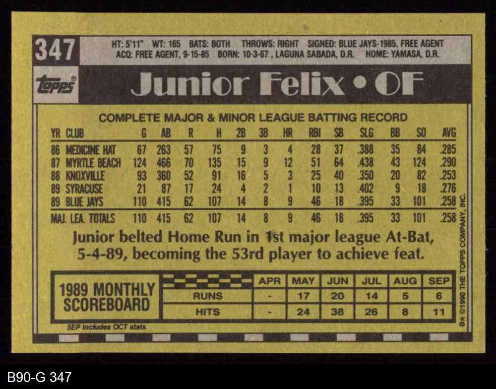 1990 Topps #347 Junior Felix 8 - NM/MT