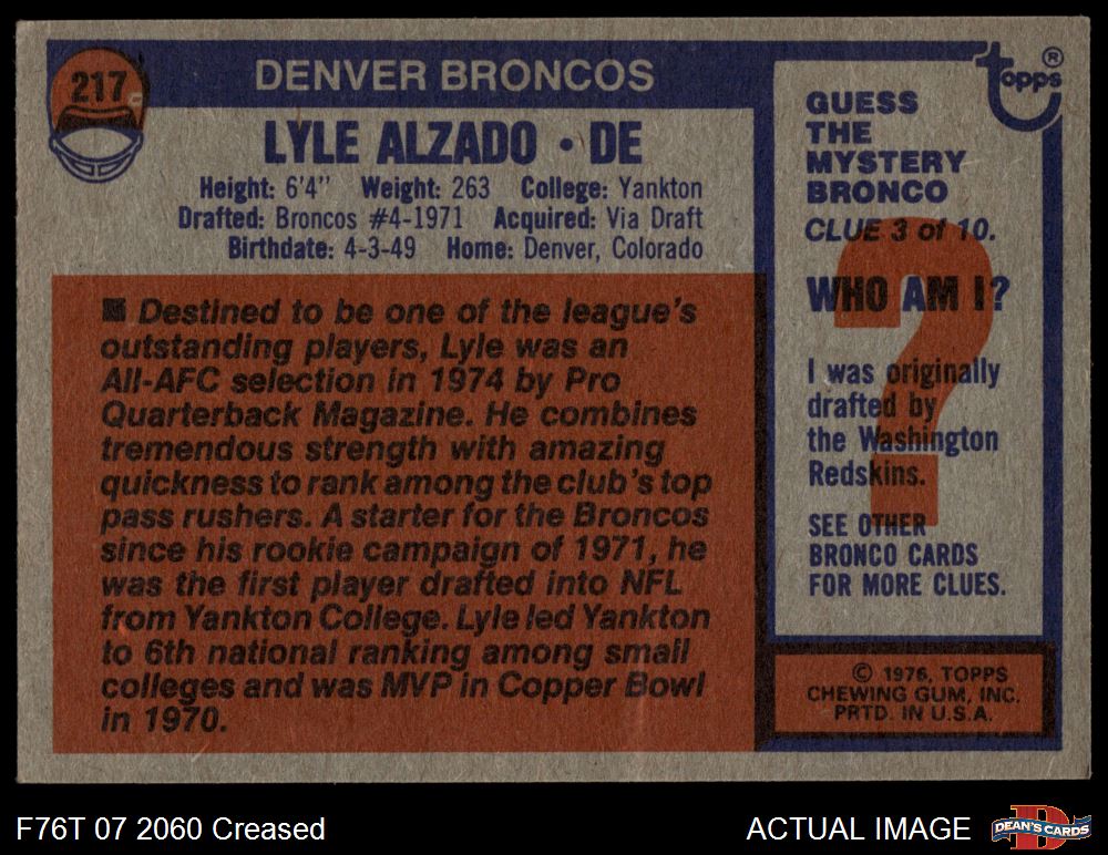 1976 Topps #217 Lyle Alzado 3 - VG