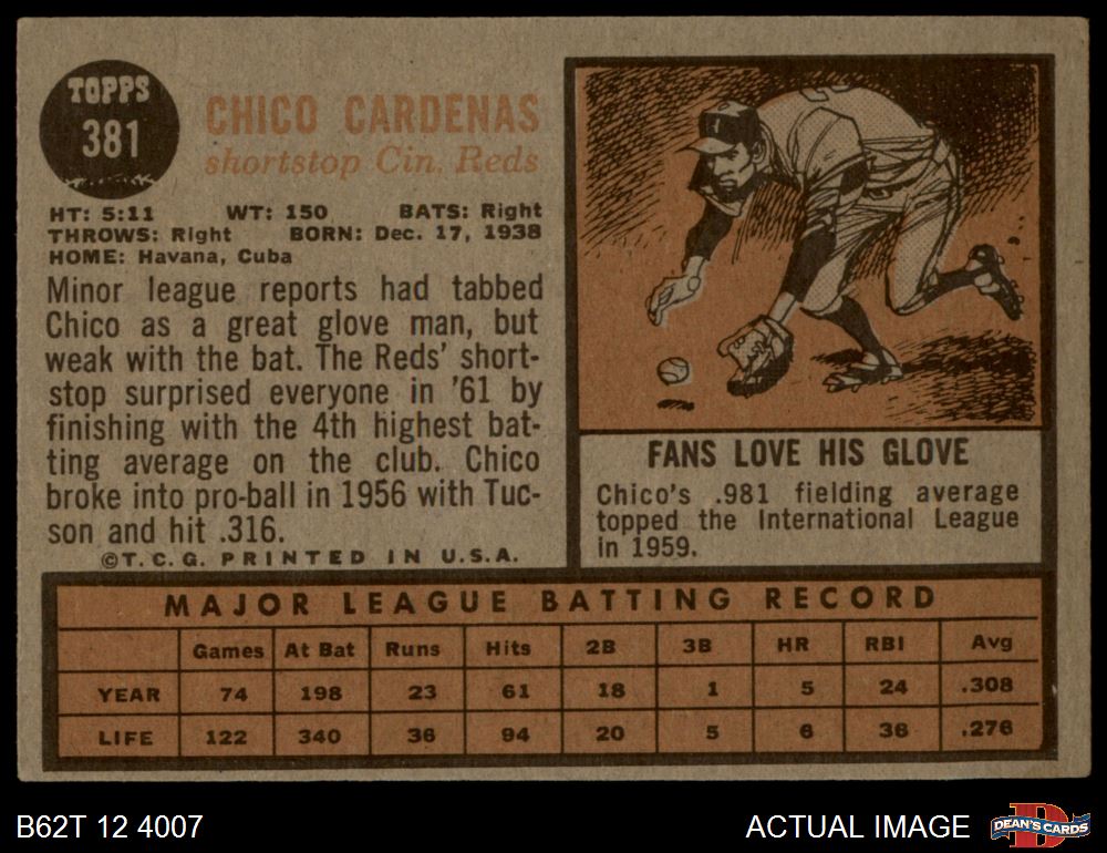 1962 Topps #381 Leo Cardenas 4 - VG/EX