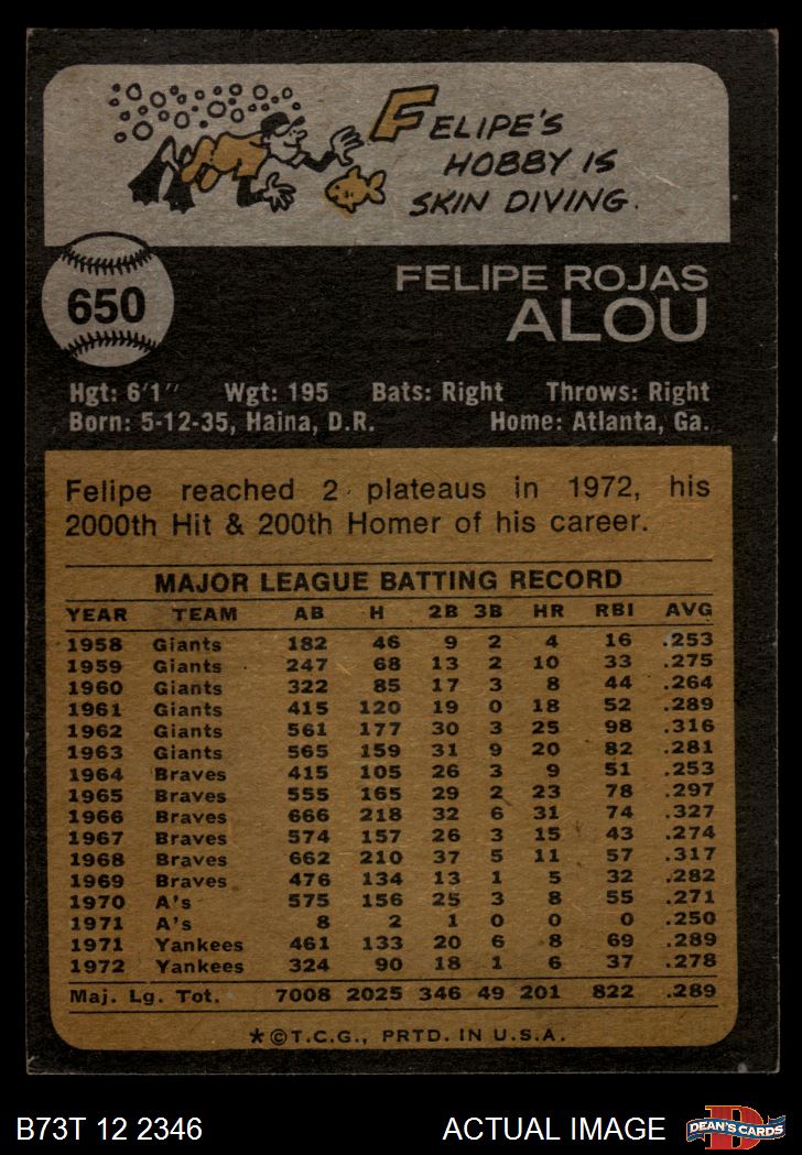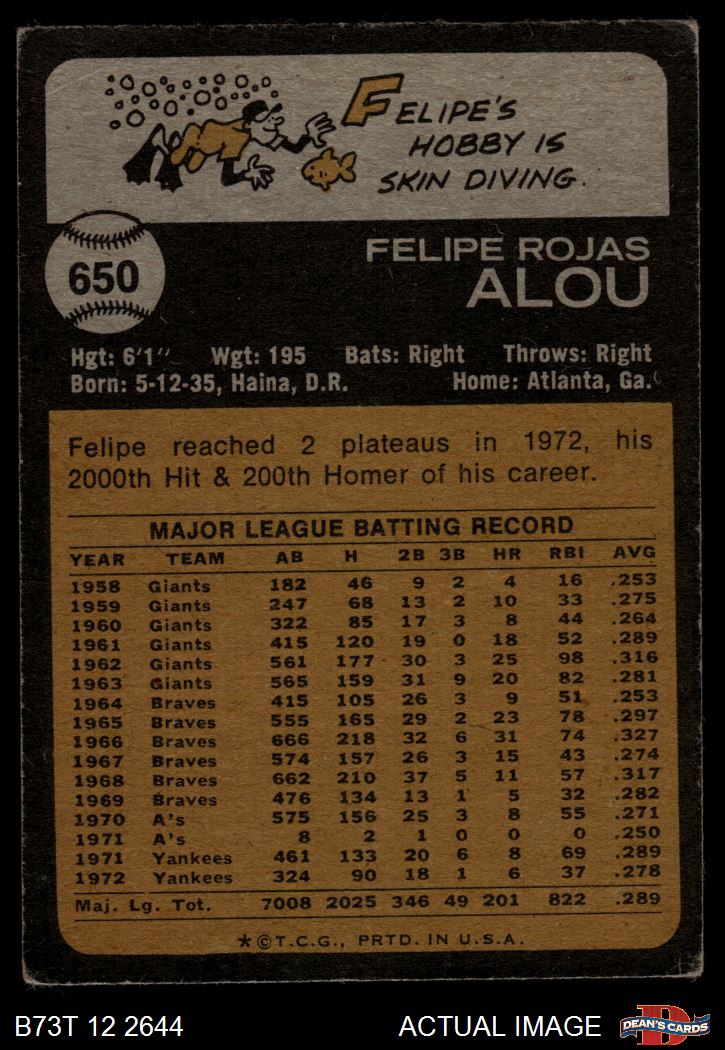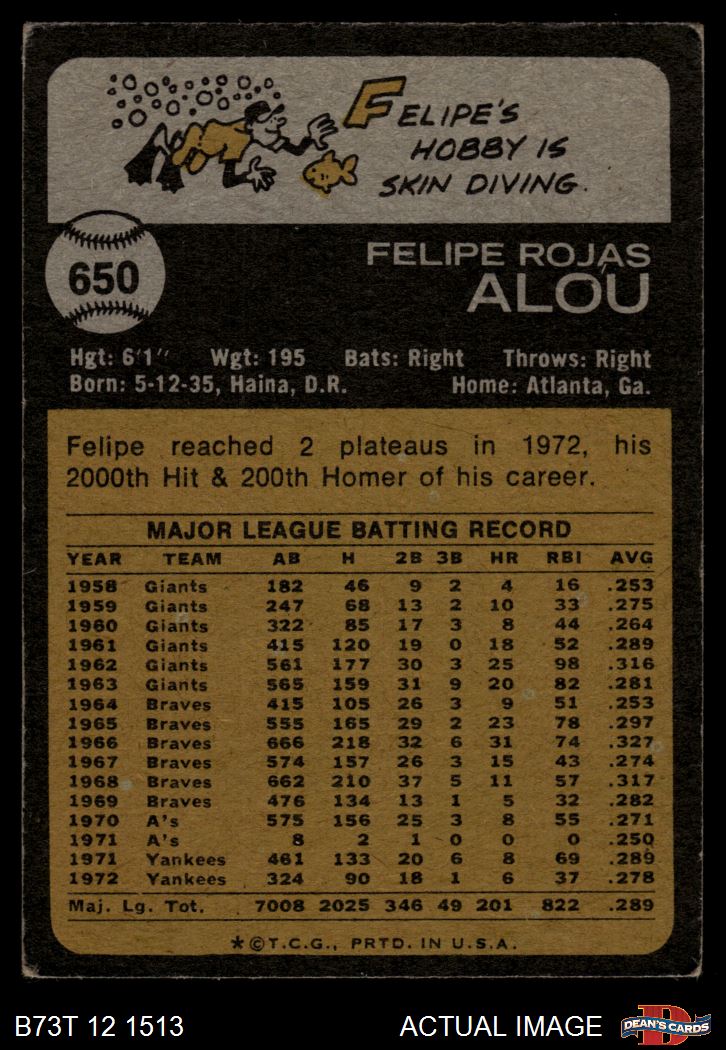 1973 Topps #650 Felipe Alou 2 - GOOD