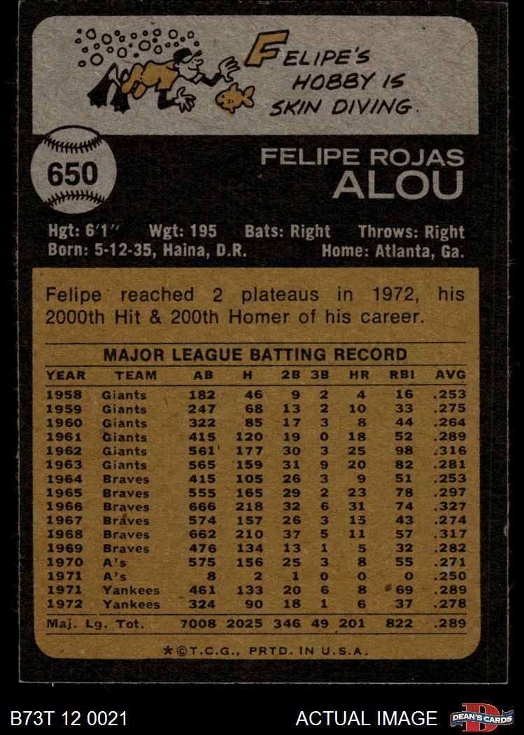 1973 Topps #650 Felipe Alou 5.5 - EX+