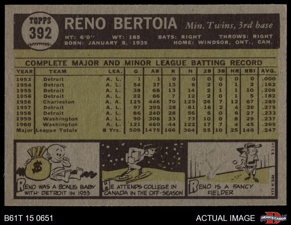 1961 Topps #392 Reno Bertoia 6.5 - EX/MT+
