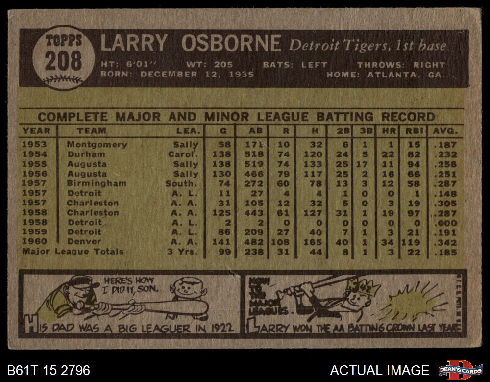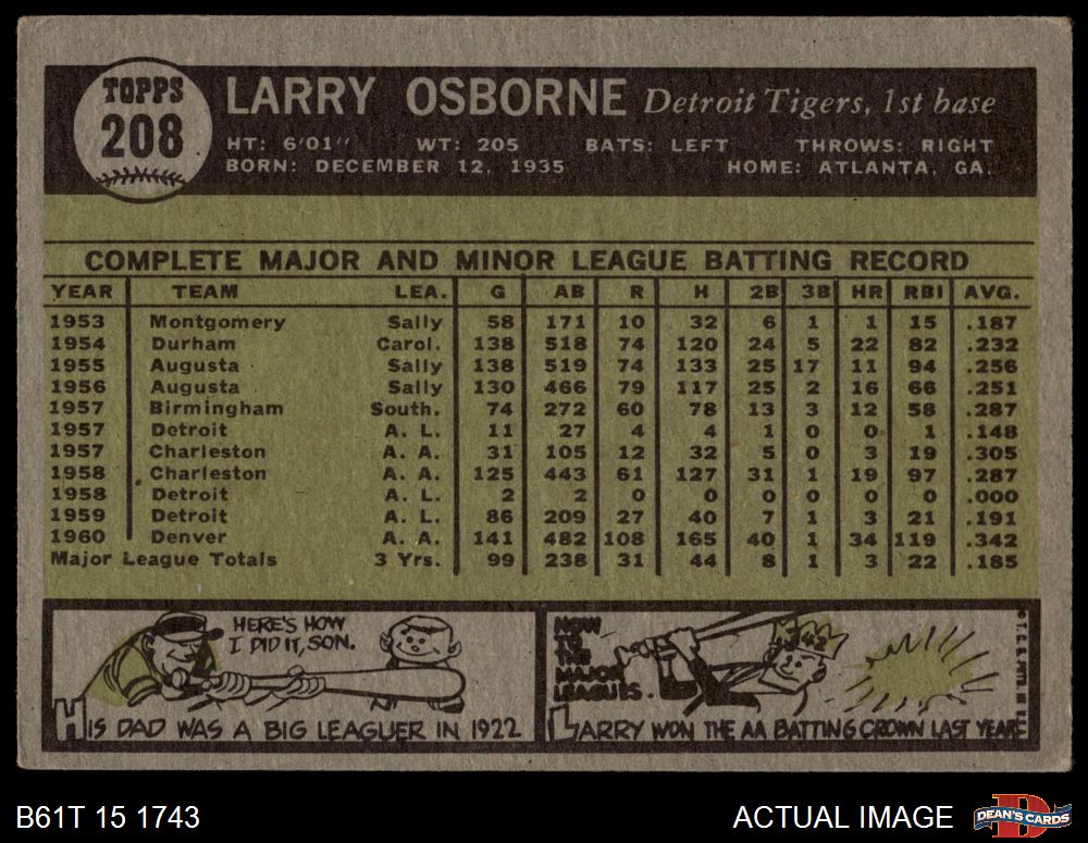 1961 Topps #208 Complete or Incomplete Line Larry Osborne 2 - GOOD