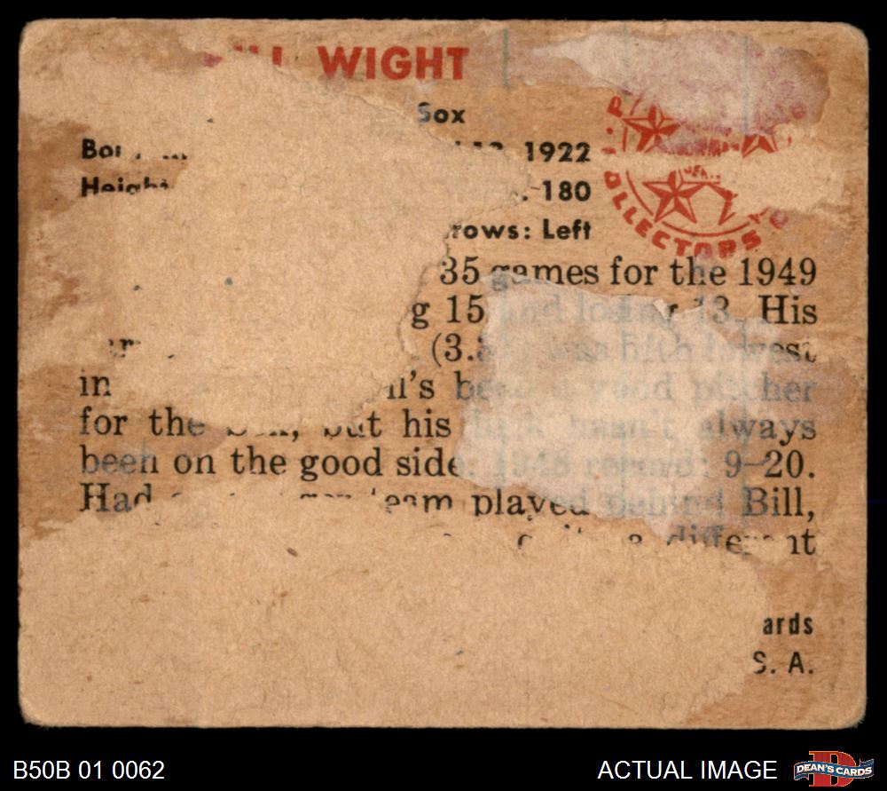 1950 Bowman #38 Bill Wight AUTHENTIC