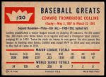 1960 Fleer #20 Has both Collins Photo & Stats / Card #80 COL has Pepper Martin's Stats on Back Eddie Collins Front Thumbnail