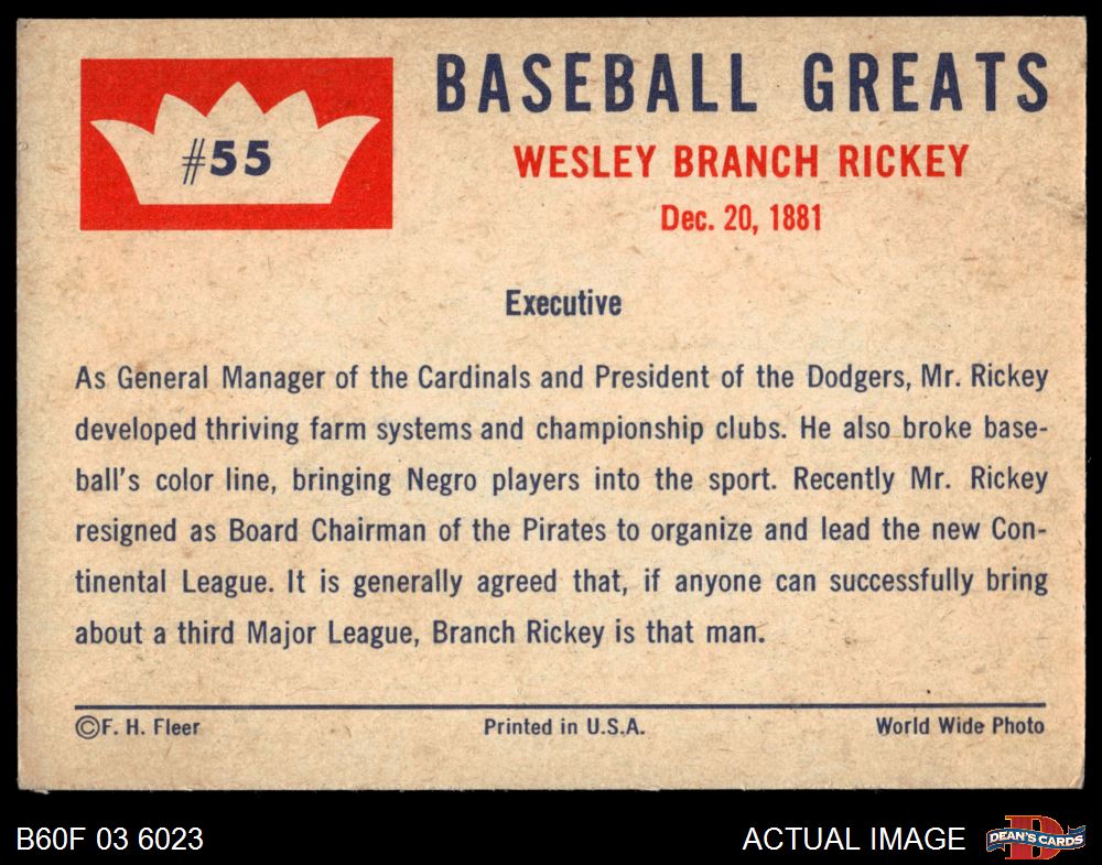 1960 Fleer #55 Branch Rickey