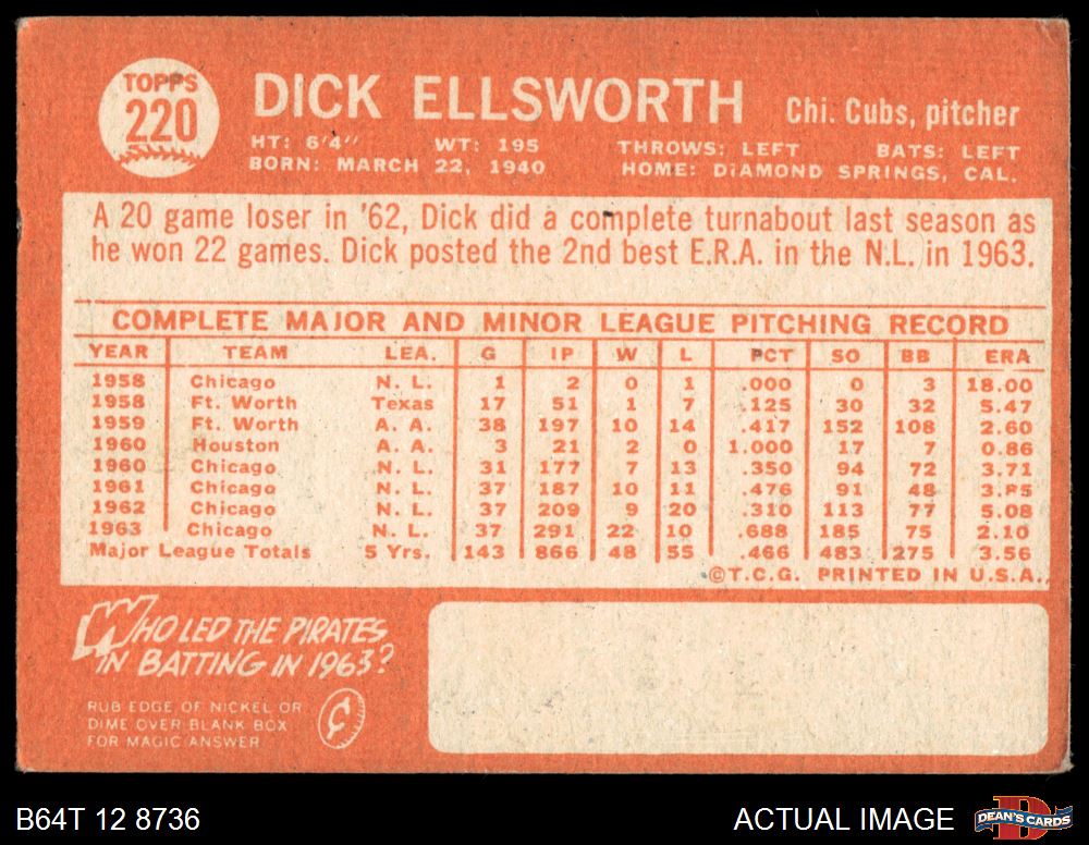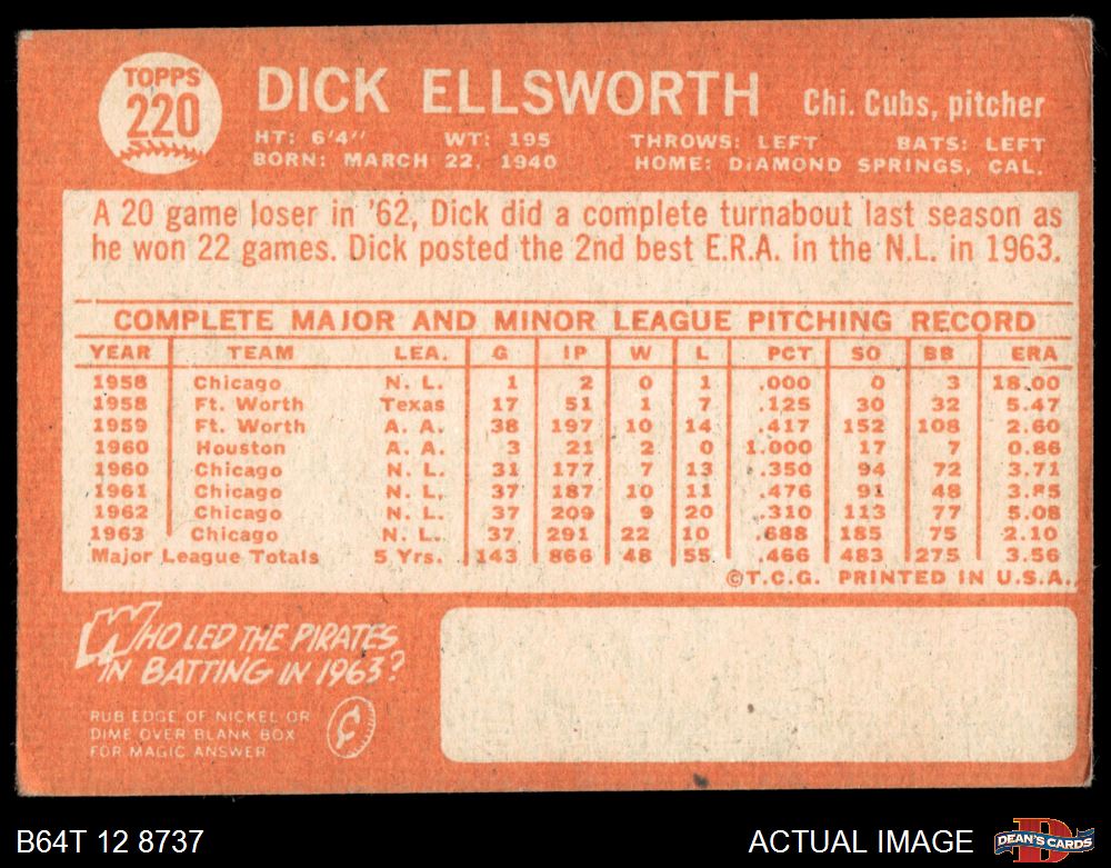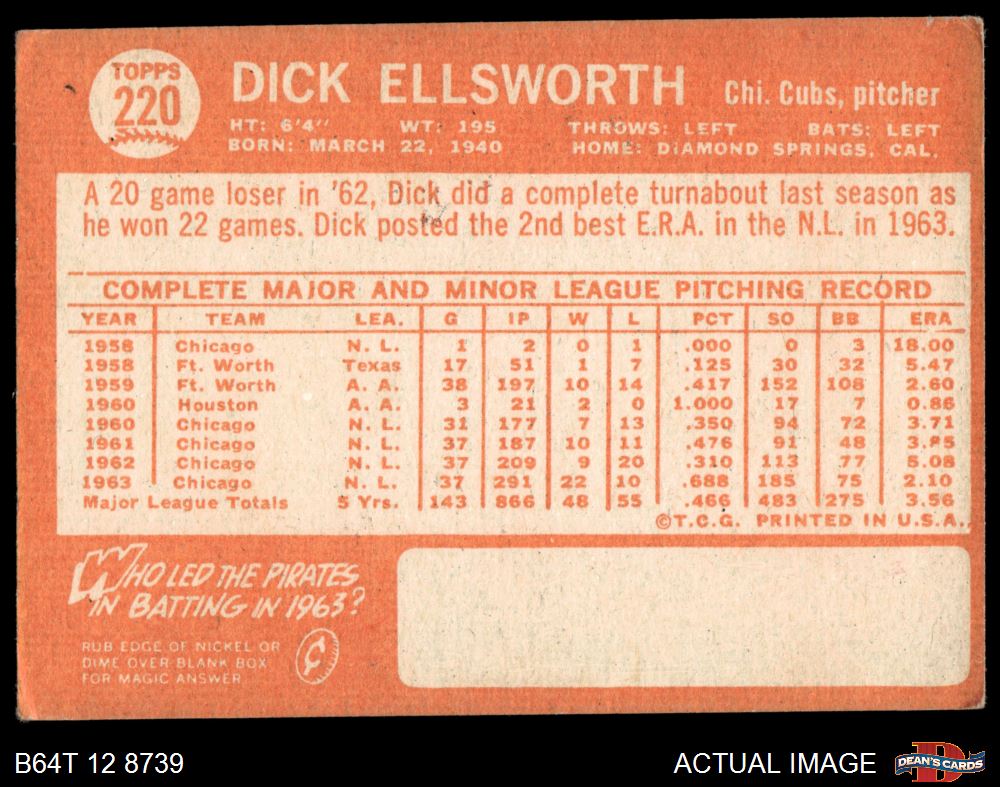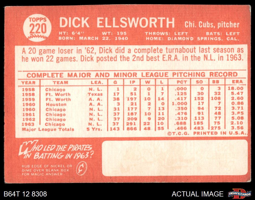 1964 Topps #220 Dick Ellsworth 2 - GOOD