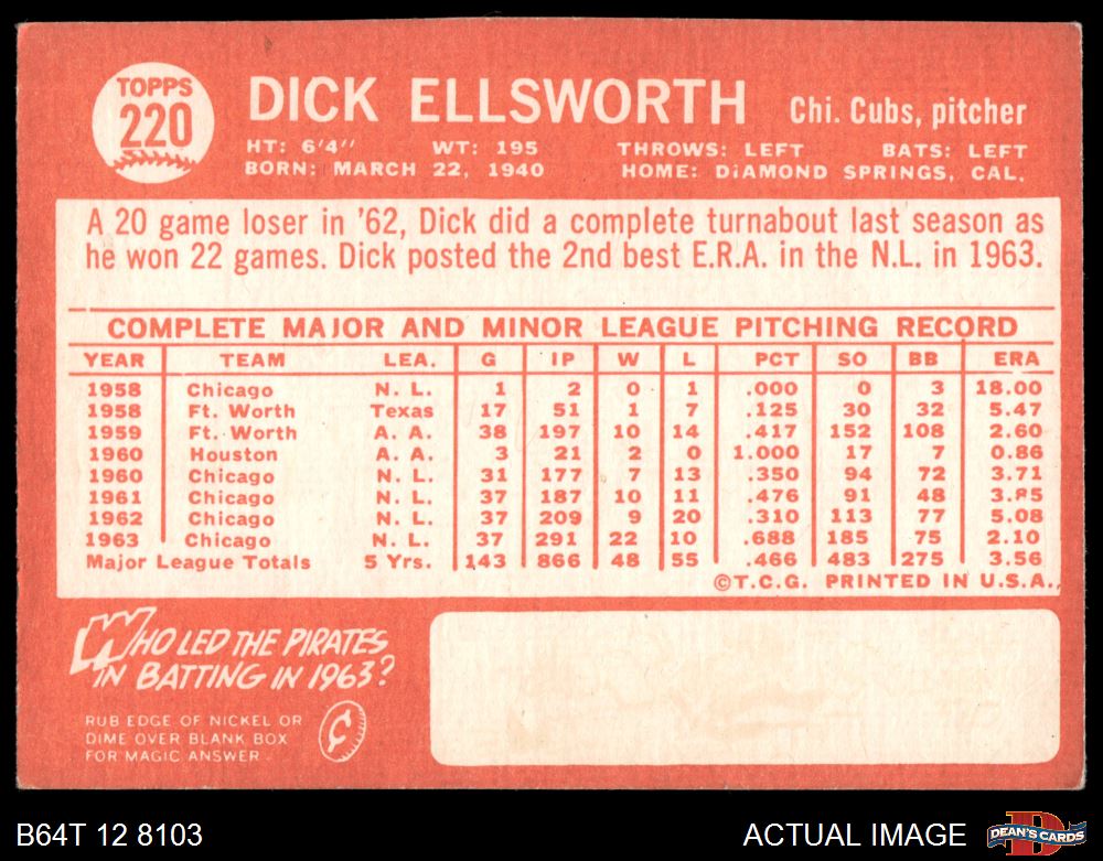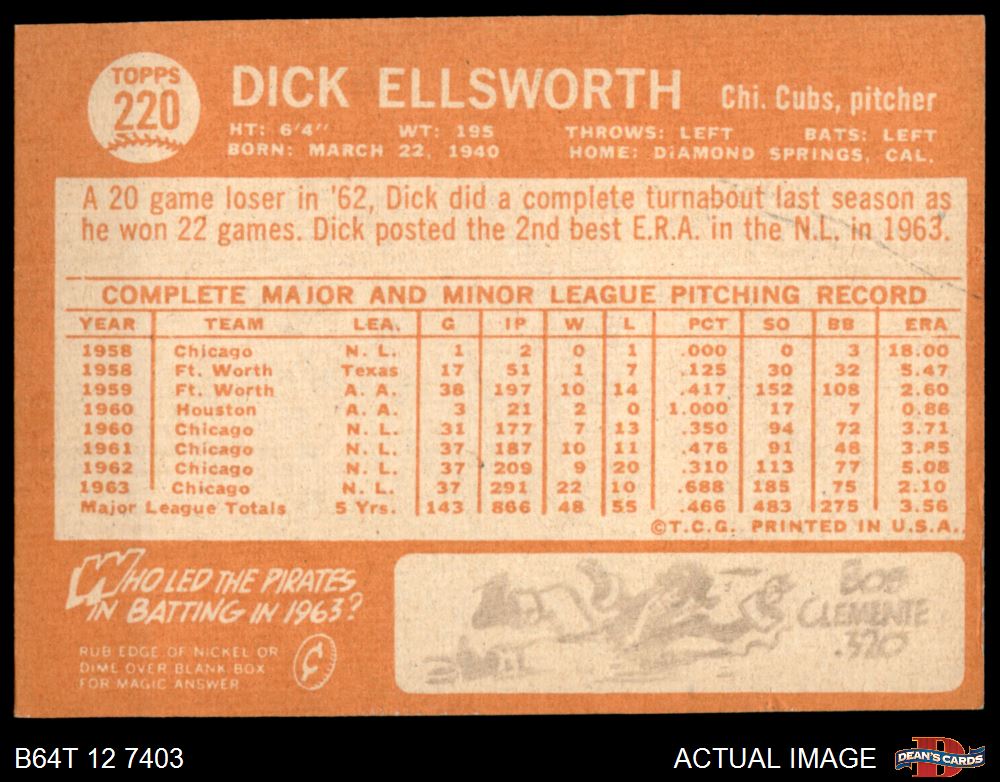 1964 Topps #220 Dick Ellsworth 4 - VG/EX