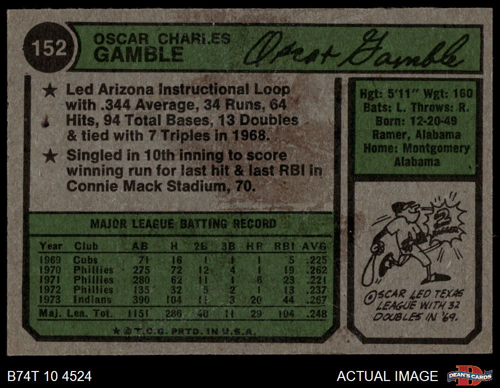 1974 Topps #152 Oscar Gamble 6.5 - EX/MT+