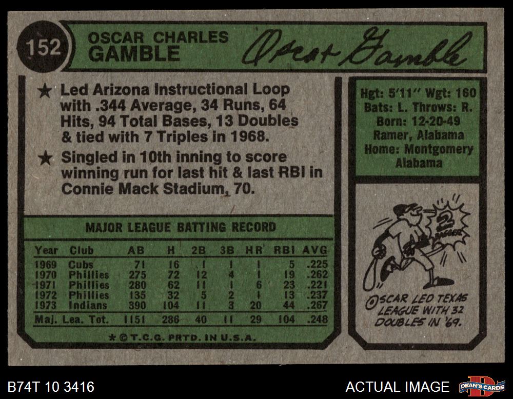 1974 Topps #152 Oscar Gamble 7 - NM
