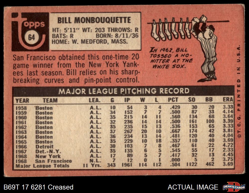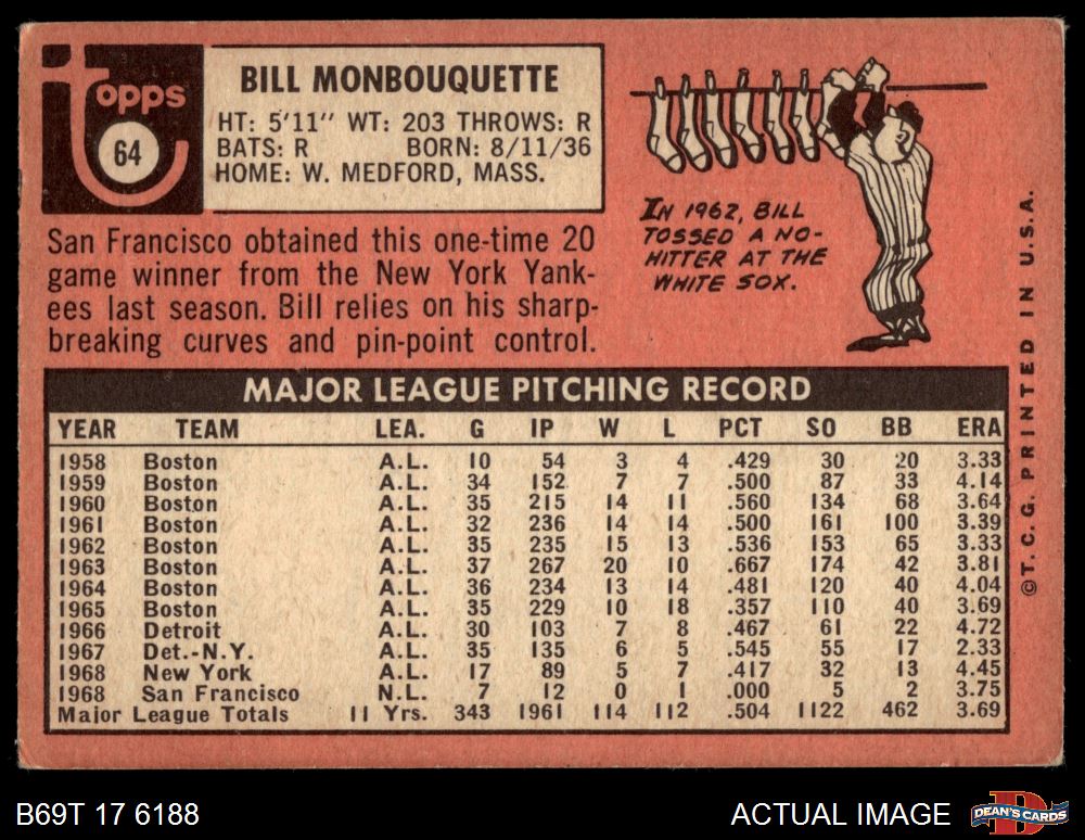 1969 Topps #64 Bill Monbouquette 2 - GOOD