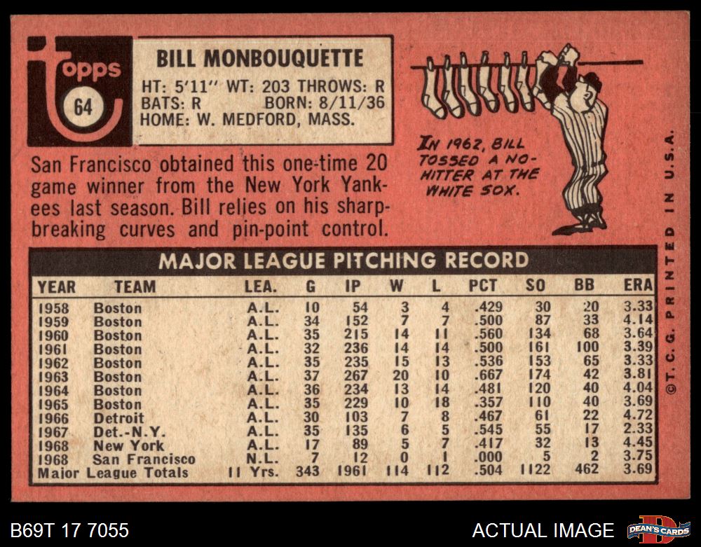 1969 Topps #64 Bill Monbouquette 3 - VG