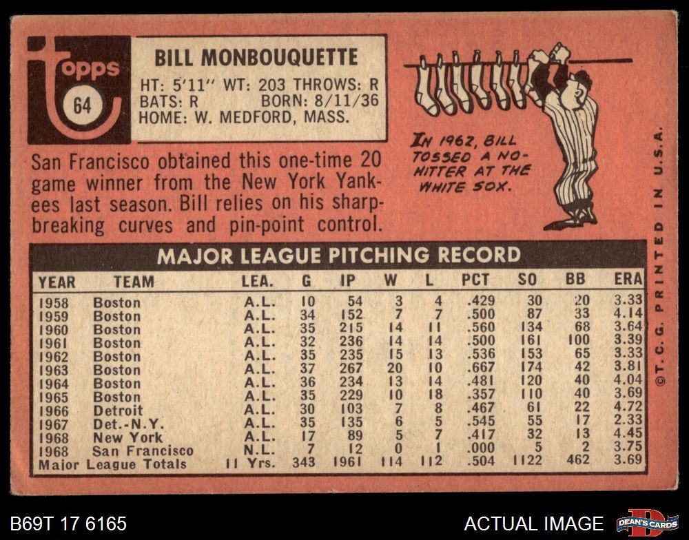1969 Topps #64 Bill Monbouquette 3.5 - VG+