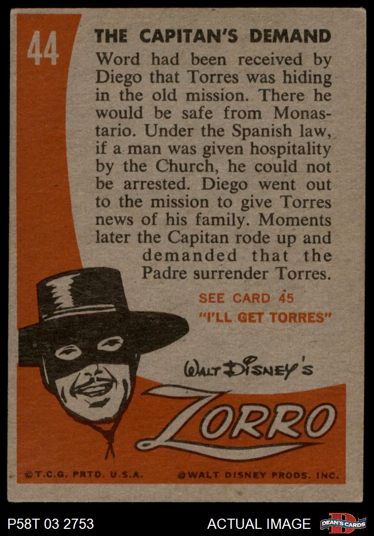 1958 Topps Zorro #44 The Captain's Demand
