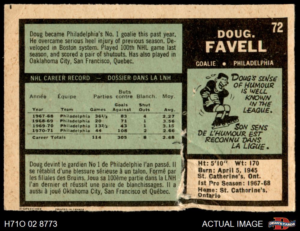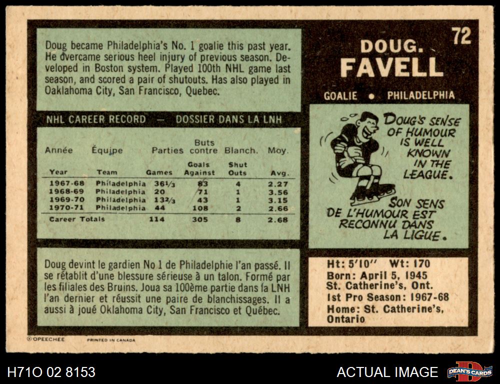 1971 O-Pee-Chee #72 Doug Favell
