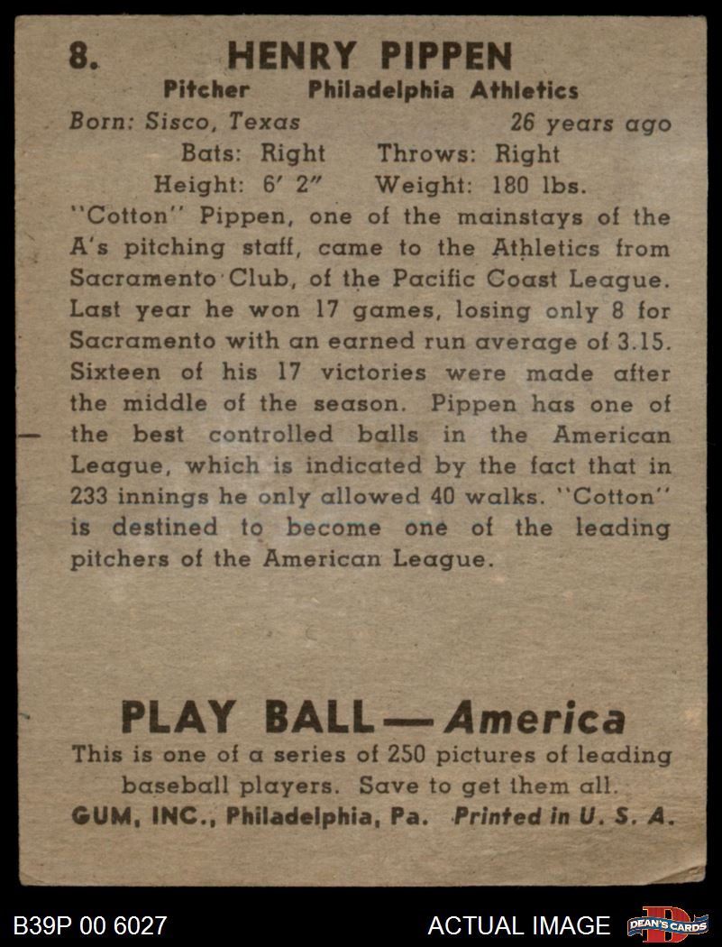 1939 Play Ball #8 Cotton Pippen