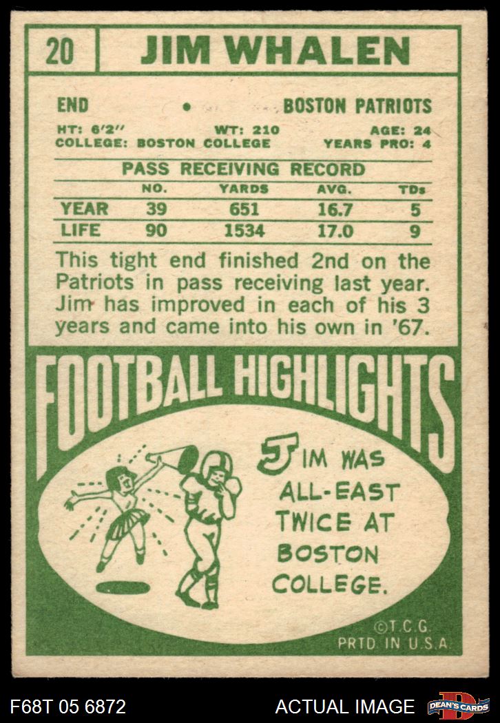 1968 Topps #20 Jim Whalen 5 - EX
