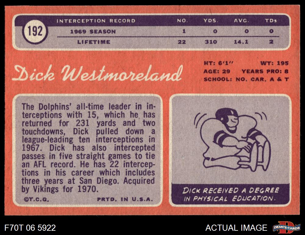 1970 Topps #192 Dick Westmoreland 7 - NM