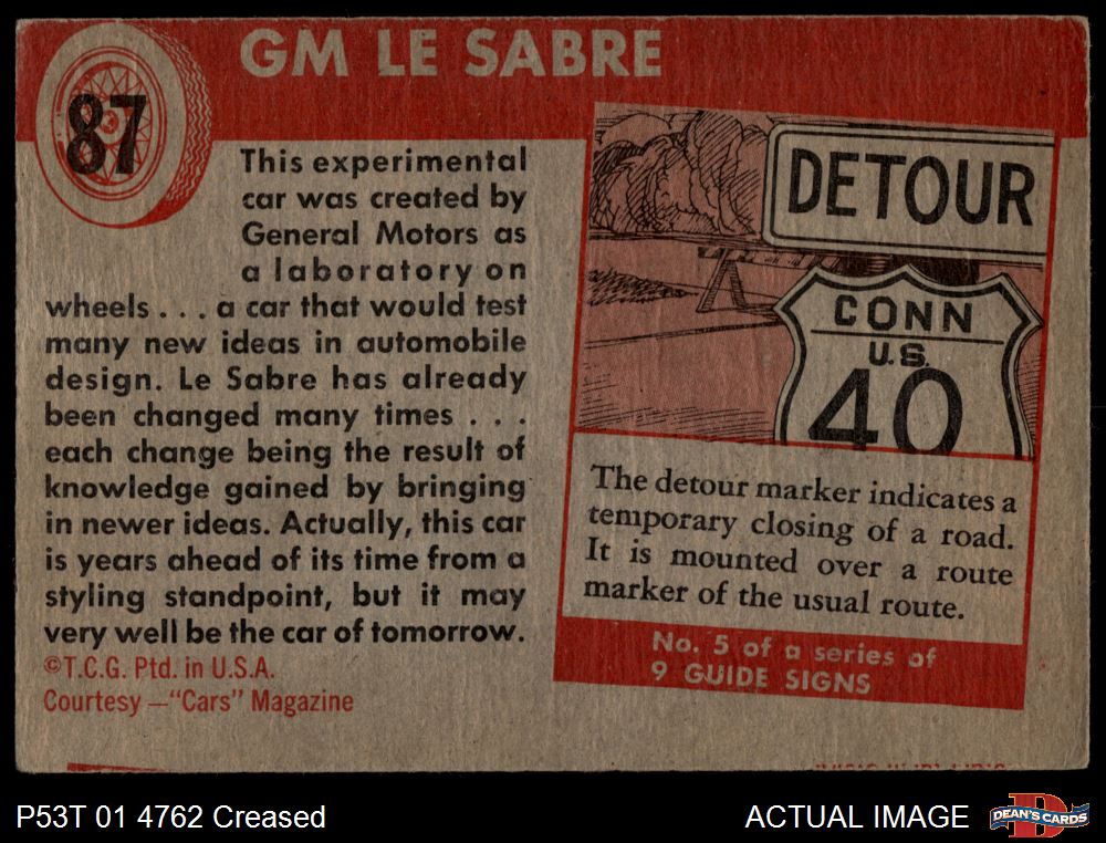 1954 Topps World on Wheels #87 GM Le Sabre